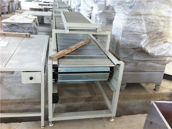 產(chǎn)品說明:鏈板輸送機可以滿足飲料貼標、灌裝、清洗等設備的單列輸送的要求,也可以使單列變成多列并行走緩慢,從而產(chǎn)生儲存量,滿足殺菌機、儲瓶臺、冷瓶機的大量供料的要求,根據(jù)產(chǎn)品的需要可選取不同寬度、不同形狀的鏈板來完成平面輸送、平面轉(zhuǎn)彎、提升、下降等要求。